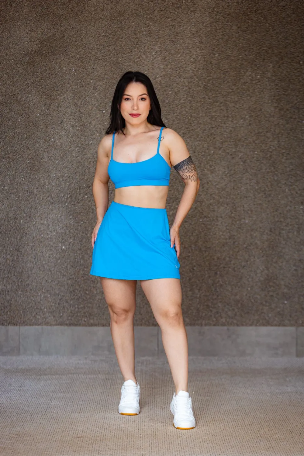 A Saia Sobreposta Elástico Personalizado oferece conforto e sofisticação com cós alto e modelagem levemente solta, ideal para atividades esportivas. Seu design minimalista ganha destaque pela leve abertura lateral com elástico personalizado, trazendo estilo exclusivo. Confeccionada em tecido macio, leve e com proteção UV, conta ainda com shorts interno que garante segurança, mobilidade, boa compressão e cobertura. Disponível nas cores azul ciano e preto.