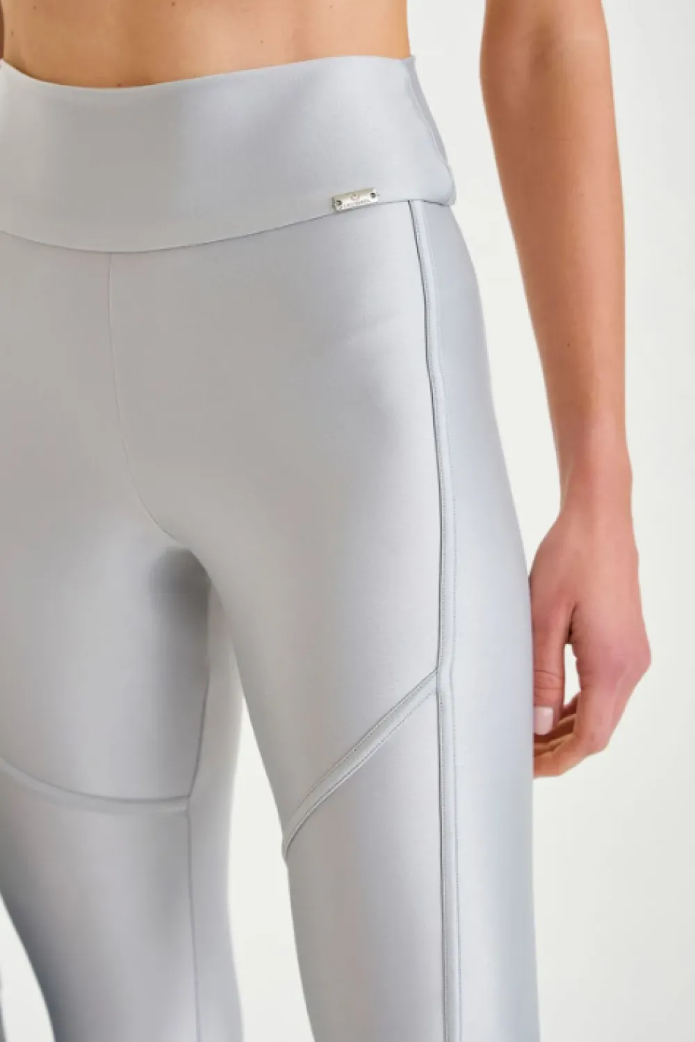 Legging em tecido com tecnologia que se adapta ao corpo, valorizando a silhueta e proporcionando maior conforto. Modelo com brilho perolizado e modelagem confortável.