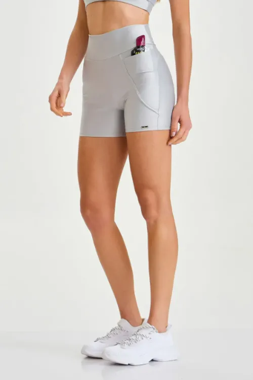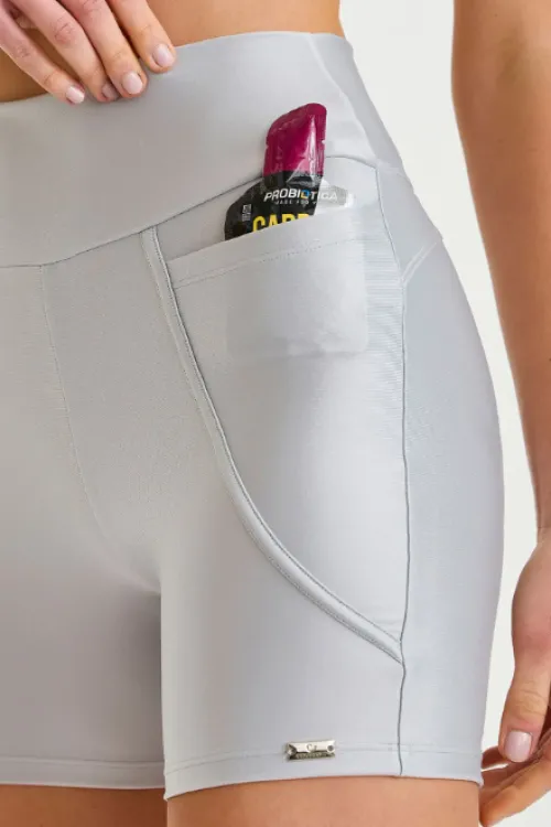 Short em tecido com tecnologia que se adapta ao corpo, valorizando a silhueta e proporcionando maior conforto. Modelo com bolso para maior praticidade e recorte que oferece efeito empina bumbum.
