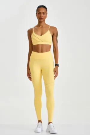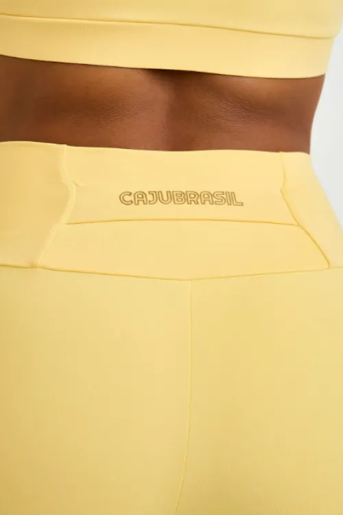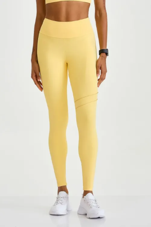 Legging em tecido com proteção solar e toque macio. Modelo com detalhe assimétrico em tecido com brilho, possui passante para blusa no cós. União de praticidade e conforto.