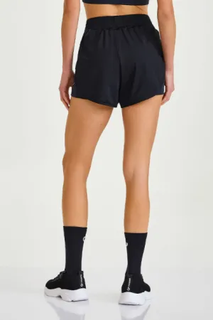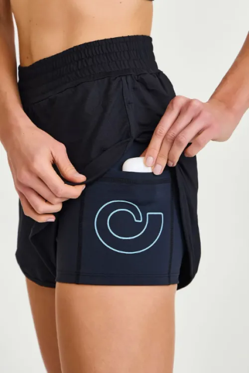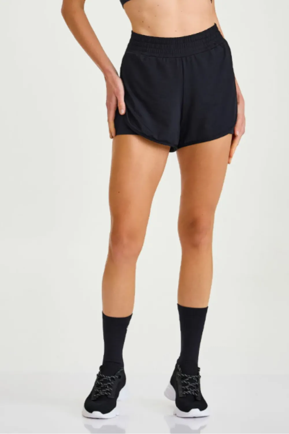 Short solto duplo para corrida, com short interno em tecido confortável e proteção solar, que possui bolso. Proporciona liberdade de movimento e ventilação durante os treinos.